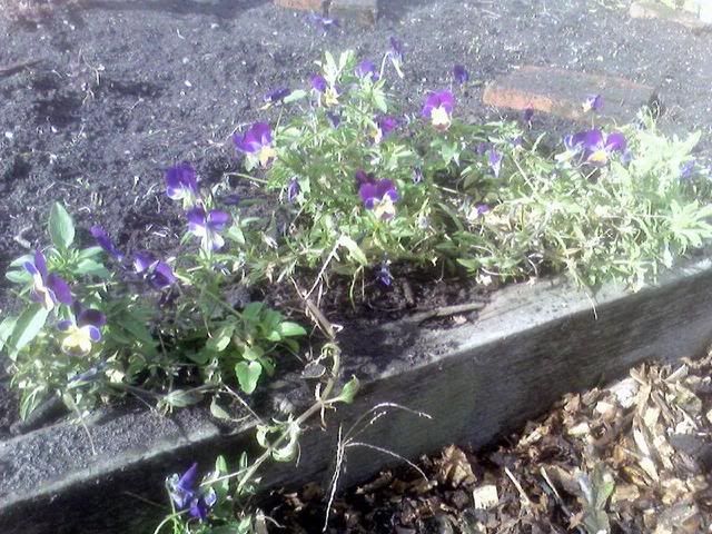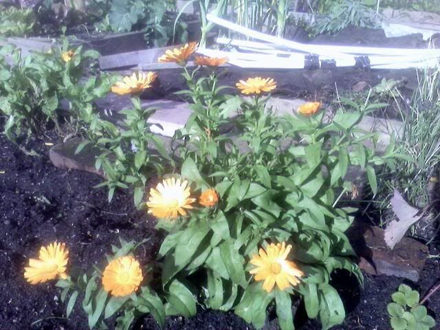 And there was a clump or two of mini pansies (I moved them all together to the front). Mom loves pansies. And Calendula, which is new to me but lovely and fun.