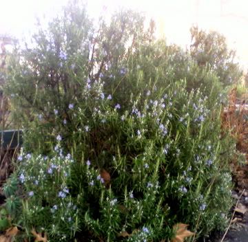And this ancient Rosemary caught my attention; its sprigs crowned with delicate, cornflower blue blossoms. Also maybe 4 feet tall.