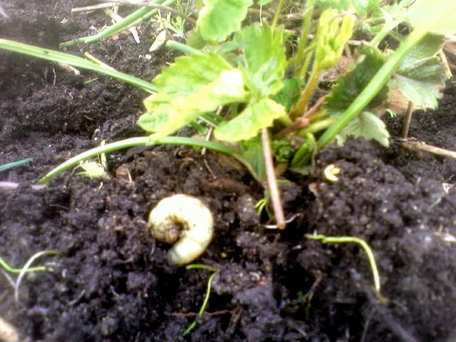 A sleeping grub, overturned while I was working the soil. Isn't he cute?