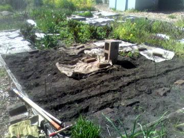 The burlap is keeping weeds down while my under-turned cover crop decays into the soil. The plant sales are coming up. This is the area of my garden waiting patiently for my future purchases.